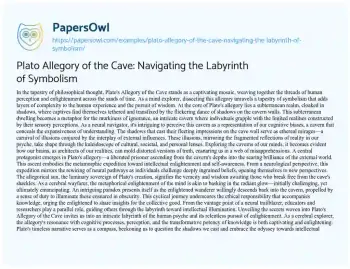 Plato Allegory of the Cave: Navigating the Labyrinth of Symbolism. (2023, Nov 24). Retrieved from https://hub.papersowl.com/examples/plato-allegory-of-the-cave-navigating-the-labyrinth-of-symbolism/