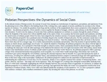 Order now To delve into the nuances of social class from a plebeian standpoint is to embark on a journey through the annals of history, where the footprints of the masses have left an indelible mark on the sands of time. It is a journey that traverses epochs and continents, unveiling the untold stories of ordinary people whose lives have been shaped by the relentless currents of economic disparity and cultural prejudice.