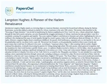 Langston Hughes: A Pioneer of the Harlem Renaissance. (2021, Mar 19). Retrieved from https://hub.papersowl.com/examples/poet-langston-hughes-biography/