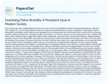 Examining Police Brutality: A Persistent Issue in Modern Society. (2020, Apr 30). Retrieved from https://hub.papersowl.com/examples/police-brutality-examining-causes-consequences-and-calls-for-accountability/