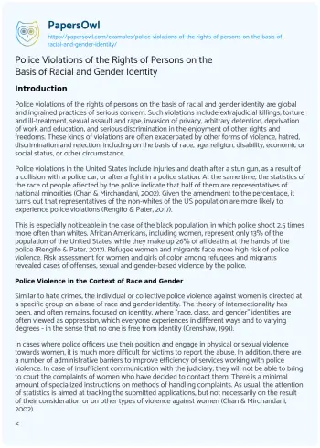 Police Violations of the Rights of Persons on the Basis of Racial and Gender Identity. (2021, Mar 13). Retrieved from https://hub.papersowl.com/examples/police-violations-of-the-rights-of-persons-on-the-basis-of-racial-and-gender-identity/