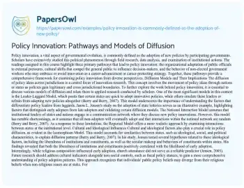 Policy Innovation: Pathways and Models of Diffusion. (2021, May 10). Retrieved from https://hub.papersowl.com/examples/policy-innovation-is-commonly-defined-as-the-adoption-of-new-policy/