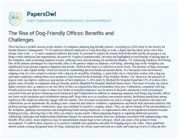 The Rise of Dog-Friendly Offices: Benefits and Challenges. (2019, May 24). Retrieved from https://hub.papersowl.com/examples/policy-recommendation/