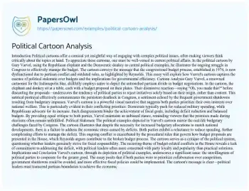 This essay will provide an analysis of a specific political cartoon, discussing its symbolism, message, and effectiveness. It will explore how the cartoon uses satire and visual elements to comment on political or social issues. The piece will examine the cartoon’s context and its relevance to current events. At PapersOwl too, you can discover numerous free essay illustrations related to Analysis.