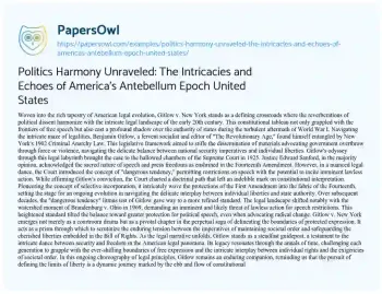 An essay on Gitlow v. New York can delve into the landmark Supreme Court case that unfolded in 1925, shaping the contours of free speech jurisprudence in the United States. Benjamin Gitlow, a socialist and editor, was charged under New York’s Criminal Anarchy Law for advocating the overthrow of the government. The case raised crucial constitutional questions about the limits of free speech and the extent to which the First Amendment applied to state actions through the Fourteenth Amendment. The Court’s decision, while affirming Gitlow’s conviction, introduced the concept of “dangerous tendency,” allowing restrictions on speech that could potentially incite lawless action. The essay can explore the lasting impact of Gitlow, tracing its influence on the evolution of free speech rights and the ongoing tension between individual liberties and the state’s authority. On PapersOwl, there’s also a selection of free essay templates associated with Politics.