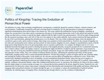 Politics of Kingship: Tracing the Evolution of Monarchical Power. (2024, Apr 01). Retrieved from https://hub.papersowl.com/examples/politics-of-kingship-tracing-the-evolution-of-monarchical-power/