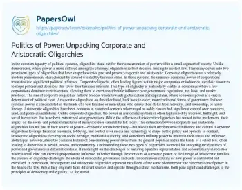 Politics of Power: Unpacking Corporate and Aristocratic Oligarchies. (2024, Feb 27). Retrieved from https://hub.papersowl.com/examples/politics-of-power-unpacking-corporate-and-aristocratic-oligarchies/