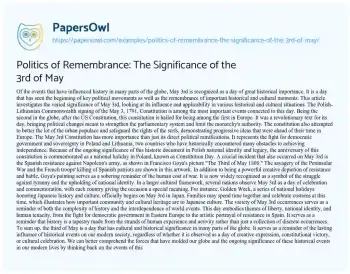 Politics of Remembrance: The Significance of the 3rd of May. (2023, Nov 24). Retrieved from https://hub.papersowl.com/examples/politics-of-remembrance-the-significance-of-the-3rd-of-may/