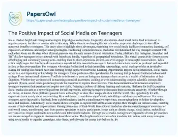 The Positive Impact of Social Media on Teenagers. (2023, Sep 05). Retrieved from https://hub.papersowl.com/examples/positive-impact-of-social-media-on-teenager/