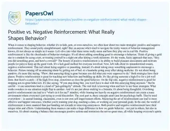 Positive vs. Negative Reinforcement: What Really Shapes Behavior?. (2023, Dec 01). Retrieved from https://hub.papersowl.com/examples/positive-vs-negative-reinforcement-what-really-shapes-behavior/