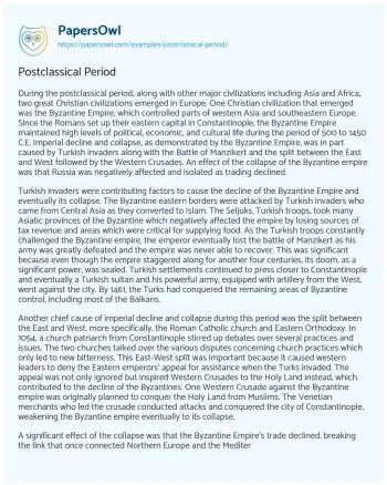 Postclassical Period. (2020, Apr 26). Retrieved from https://hub.papersowl.com/examples/postclassical-period/