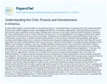 Understanding the Crisis: Poverty and Homelessness in America. (2021, Apr 12). Retrieved from https://hub.papersowl.com/examples/poverty-and-homelessness-in-america/