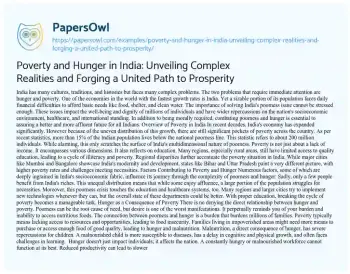 Poverty and Hunger in India: Unveiling Complex Realities and Forging a United Path to Prosperity. (2023, Sep 15). Retrieved from https://hub.papersowl.com/examples/poverty-and-hunger-in-india-unveiling-complex-realities-and-forging-a-united-path-to-prosperity/