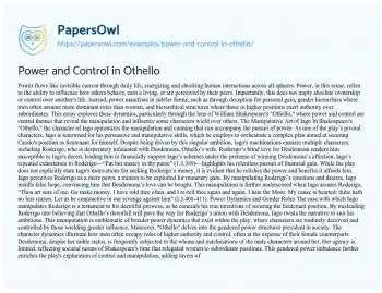 This essay explores these dynamics, particularly through the lens of William Shakespeare's "Othello," where power and control are central themes that reveal the manipulation and influence some characters wield over others.