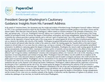 President George Washington's Cautionary Guidance: Insights from His Farewell Address. (2024, Jun 01). Retrieved from https://hub.papersowl.com/examples/president-george-washingtons-cautionary-guidance-insights-from-his-farewell-address/