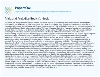 This essay will compare the book “Pride and Prejudice” by Jane Austen with its movie adaptations. It will discuss how different adaptations interpret and portray the novel’s characters, settings, and themes. The piece will explore the challenges of adapting a literary work to film, including considerations of historical accuracy, narrative pacing, and character development. It will also assess how these adaptations contribute to the enduring popularity of Austen’s work. Also at PapersOwl you can find more free essay examples related to Book.