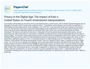 Privacy in the Digital Age: The Impact of Katz v. United States on Fourth Amendment Interpretations. (2024, May 21). Retrieved from https://hub.papersowl.com/examples/privacy-in-the-digital-age-the-impact-of-katz-v-united-states-on-fourth-amendment-interpretations/