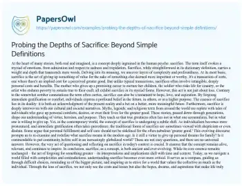 Probing the Depths of Sacrifice: Beyond Simple Definitions. (2023, Oct 26). Retrieved from https://hub.papersowl.com/examples/probing-the-depths-of-sacrifice-beyond-simple-definitions/