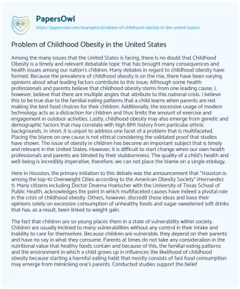 Problem of Childhood Obesity in the United States. (2021, Apr 24). Retrieved from https://hub.papersowl.com/examples/problem-of-childhood-obesity-in-the-united-states/