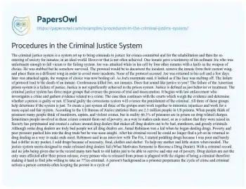 An informative piece detailing the step-by-step procedures within the criminal justice system, from the initial arrest and booking to trial, sentencing, and post-trial processes. Additionally, PapersOwl presents more free essays samples linked to Crime topic.