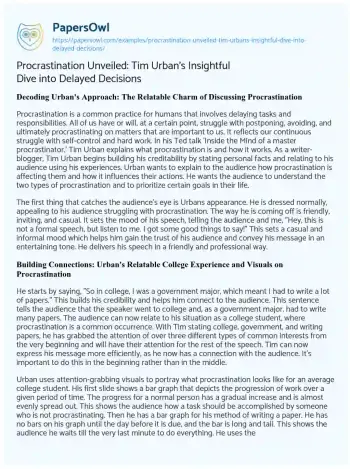 Procrastination Unveiled: Tim Urban's Insightful Dive into Delayed Decisions. (2023, Aug 07). Retrieved from https://hub.papersowl.com/examples/procrastination-unveiled-tim-urbans-insightful-dive-into-delayed-decisions/