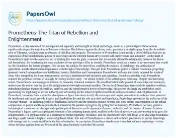 Prometheus: The Titan of Rebellion and Enlightenment. (2024, Jul 16). Retrieved from https://hub.papersowl.com/examples/prometheus-the-iconoclast-of-greek-mythology/