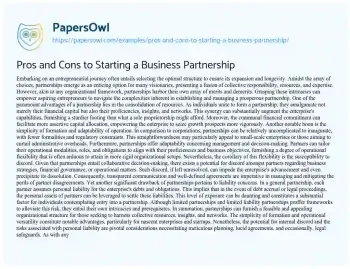 Pros and Cons to Starting a Business Partnership. (2024, Apr 14). Retrieved from https://hub.papersowl.com/examples/pros-and-cons-to-starting-a-business-partnership/