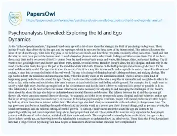 Psychoanalysis Unveiled: Exploring the Id and Ego Dynamics. (2023, Nov 24). Retrieved from https://hub.papersowl.com/examples/psychoanalysis-unveiled-exploring-the-id-and-ego-dynamics/