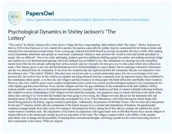 Psychological Dynamics in Shirley Jackson's "The Lottery". (2022, Jun 25). Retrieved from https://hub.papersowl.com/examples/psychological-dynamics-in-shirley-jacksons-the-lottery/