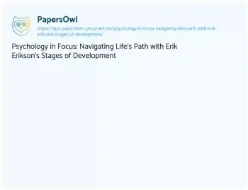 Psychology in Focus: Navigating Life's Path with Erik Erikson's Stages of Development. (2024, Feb 01). Retrieved from https://hub.papersowl.com/examples/psychology-in-focus-navigating-lifes-path-with-erik-eriksons-stages-of-development/