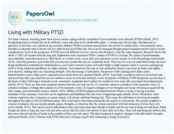 Living with Military PTSD. (2019, Nov 12). Retrieved from https://hub.papersowl.com/examples/ptsd-in-veterans/