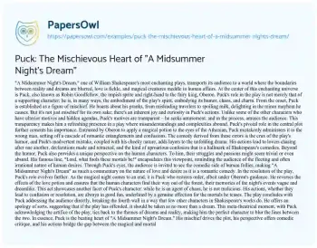 Puck: The Mischievous Heart of "A Midsummer Night's Dream". (2023, Dec 04). Retrieved from https://hub.papersowl.com/examples/puck-the-mischievous-heart-of-a-midsummer-nights-dream/