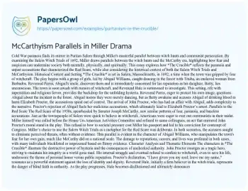 McCarthyism Parallels in Miller Drama. (2021, Jul 06). Retrieved from https://hub.papersowl.com/examples/puritanism-in-the-crucible/