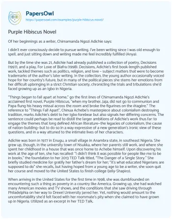 Purple Hibiscus Novel. (2021, Oct 20). Retrieved from https://hub.papersowl.com/examples/purple-hibiscus-novel/