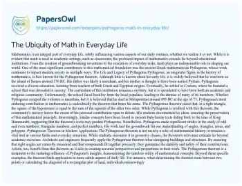 The Ubiquity of Math in Everyday Life. (2021, Mar 22). Retrieved from https://hub.papersowl.com/examples/pythagoras-math-in-everyday-life/