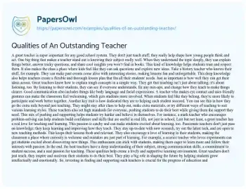 Qualities of An Outstanding Teacher. (2024, Sep 17). Retrieved from https://hub.papersowl.com/examples/qualities-of-an-outstanding-teacher/