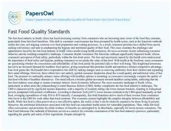 Fast Food Quality Standards. (2019, Nov 10). Retrieved from https://hub.papersowl.com/examples/quality-of-food-from-fast-food-franchises/