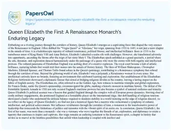 Queen Elizabeth the First: A Renaissance Monarch's Enduring Legacy. (2024, Jan 26). Retrieved from https://hub.papersowl.com/examples/queen-elizabeth-the-first-a-renaissance-monarchs-enduring-legacy/