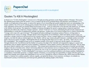 Quotes To Kill A Mockingbird. (2024, May 01). Retrieved from https://hub.papersowl.com/examples/quotes-to-kill-a-mockingbird/