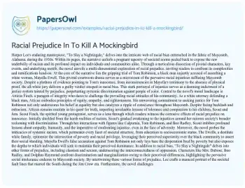 Racial Prejudice In To Kill A Mockingbird. (2024, May 01). Retrieved from https://hub.papersowl.com/examples/racial-prejudice-in-to-kill-a-mockingbird/