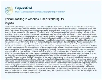 Racial Profiling in America: Understanding Its Legacy. (2021, Apr 13). Retrieved from https://hub.papersowl.com/examples/racial-profiling-in-america/