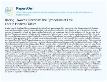 Racing Towards Freedom: The Symbolism of Fast Cars in Modern Culture. (2024, May 28). Retrieved from https://hub.papersowl.com/examples/racing-towards-freedom-the-symbolism-of-fast-cars-in-modern-culture/