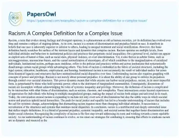 Racism: A Complex Definition for a Complex Issue. (2024, Mar 18). Retrieved from https://hub.papersowl.com/examples/racism-a-complex-definition-for-a-complex-issue/