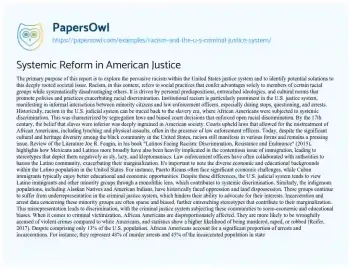 Systemic Reform in American Justice. (2020, Apr 19). Retrieved from https://hub.papersowl.com/examples/racism-and-the-u-s-criminal-justice-system/
