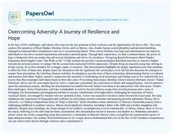The narratives of Brent Staples, Sherman Alexie, and Liz Murray collectively highlight the transformative power of hope and resilience in overcoming adversity. Each author faced unique challenges related to racial stereotypes, societal expectations, and personal hardships. However, their stories reveal a shared theme: the ability to persevere in the face of adversity and to envision a future beyond societal constraints. By harnessing hope, these individuals not only achieved personal success but also inspired others to pursue their dreams despite the odds. Their journeys remind us that while society may impose limitations, the human spirit's capacity for hope and resilience can lead to a brighter and more fulfilling future.
