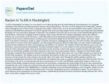Racism In To Kill A Mockingbird. (2024, May 01). Retrieved from https://hub.papersowl.com/examples/racism-in-to-kill-a-mockingbird/