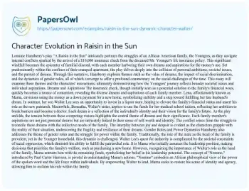Character Evolution in Raisin in the Sun