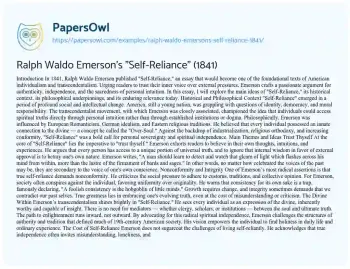 Ralph Waldo Emerson’s "Self-Reliance" (1841). (2025, May 14). Retrieved from https://hub.papersowl.com/examples/ralph-waldo-emersons-self-reliance-1841/