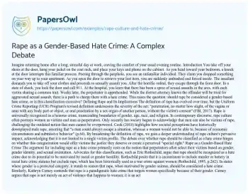 Rape as a Gender-Based Hate Crime: A Complex Debate. (2020, Jul 06). Retrieved from https://hub.papersowl.com/examples/rape-culture-and-hate-crime/