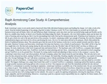 Raph Armstrong Case Study: A Comprehensive Analysis